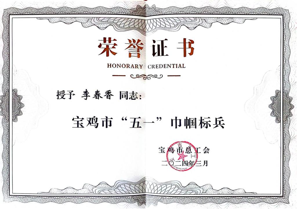 扎根一線 風(fēng)華無限||寶光股份李春香喜獲寶雞市“五一巾幗標(biāo)兵”榮譽(yù)稱號(hào)