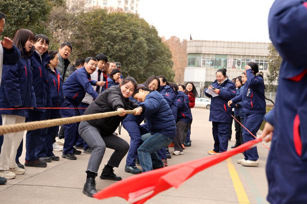 力拔千鈞展豪情,繩牽眾志啟新程。此次拔河比賽分為男子組和女子組。比賽現(xiàn)場(chǎng),各個(gè)隊(duì)伍都嚴(yán)陣以待,摩拳擦掌,躍躍欲試,眼神中透露出堅(jiān)定的決心和志在必得的信念。隨著裁判的一聲哨響,比賽正式拉開帷幕。剎那間,雙方隊(duì)員爆發(fā)出驚人的力量,雙手緊緊拽住繩子,身體拼命后仰,迸發(fā)出無盡能量。繩子中間的紅色標(biāo)記在兩隊(duì)之間來回移動(dòng),每一次小小的偏移都牽動(dòng)著場(chǎng)內(nèi)外的心。場(chǎng)外啦啦隊(duì)和觀眾扯著嗓子喊著號(hào)子為自己的隊(duì)員加油助威,加油聲、吶喊聲、歡笑聲此起彼伏,熱鬧非凡。