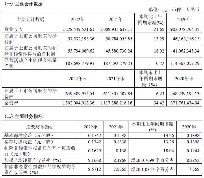 寶光股份2022年度主要財務(wù)指標(biāo)